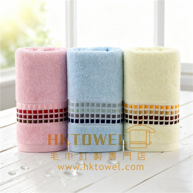 精緻小格子設計,多色交匯織造,外觀大方得體,是本港眾多慈善機構毛巾批發喜愛款式